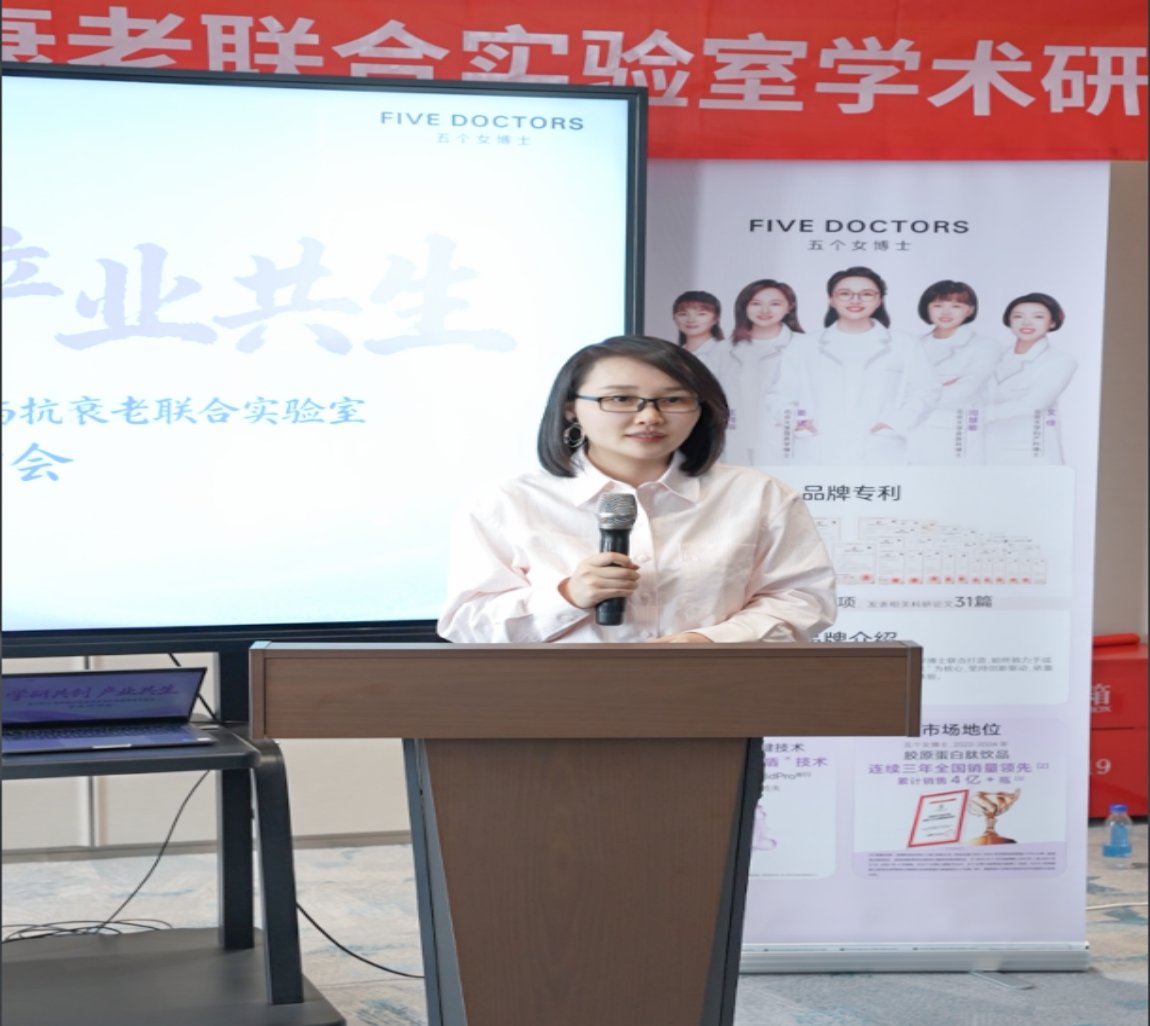 姜珺博士以创业者与北医校友的双重身份,向所有参与联合研究的北京大学医学部师生及五个女博士研究院的工作人员表达了衷心感谢。她表示,期待未来能与母校在更广泛的领域开展合作,共同推动产业向更科学、更专业、更高质量的方向迈进。经过三年扎实的基础研究,北大医学-青颜博识皮肤营养与抗衰老联合实验室所取得的学术成果,将与五个女博士在市场洞察、产品研发及成果转化等方面的实践优势深度融合,共同探索一条以科学为基础、以需求为导向的产学研协同发展路径。