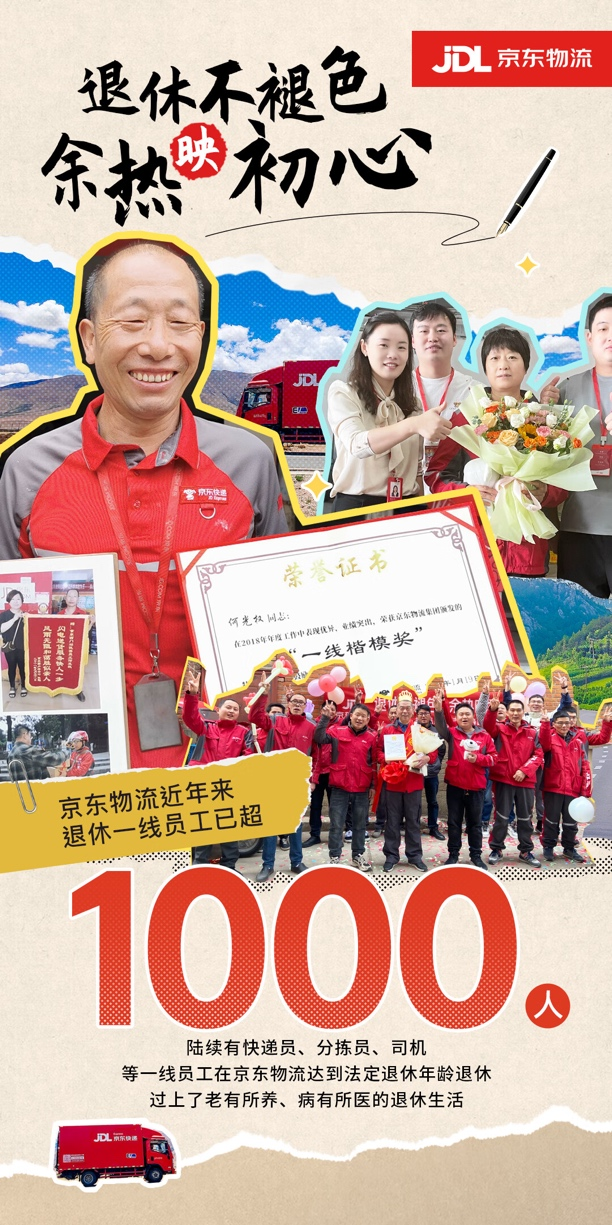 据了解,这1000多人中,女性多于男性,女性员工除了一线快递员之外,主要岗位还包括仓库分拣员、防损等岗位。按照我国相关法律法规规定,我国职工法定退休年龄是男性60周岁,女性职工50周岁。京东物流从创立至今,一直给一线员工缴纳包括“五险一金”等在内多项福利政策,累计缴纳符合各地规定之后,法定退休的一线员工可以领着养老金,实现“老有所养”、“病有所医”,过上了有保障的退休生活。